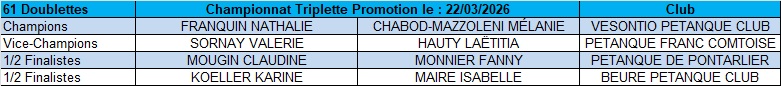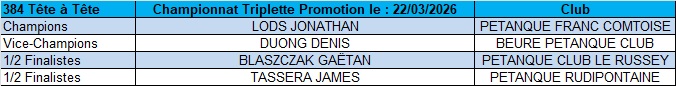 Résultats du Championnat triplette Promotion